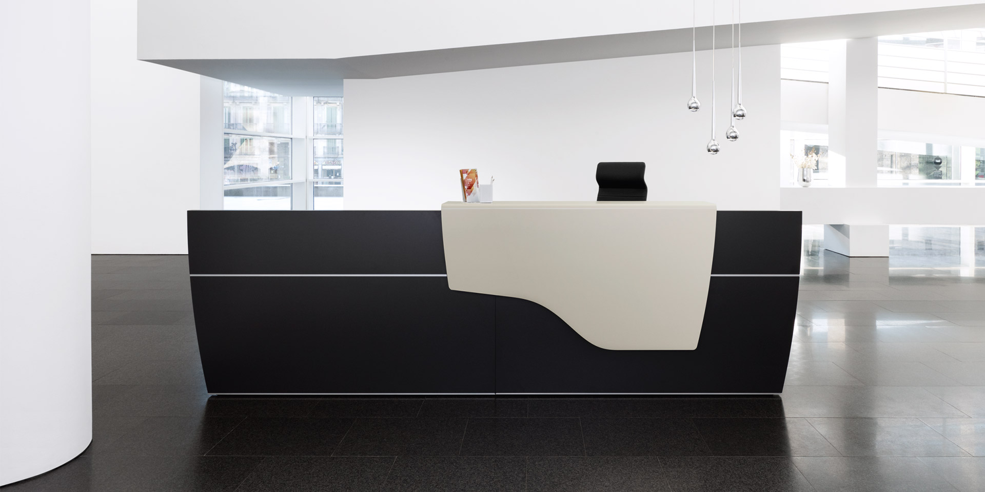 Nehmen Sie Ihre Kunden oder Partner professionell in Empfang. Empfangtresen von OKA, König & Neurath, Febrü, können wunderbar in die Raumgestaltung integriert werden. In den Ausstellungen der Office Partner GmbH in Wilhelmshaven & Rastede finden Sie Beispiele.